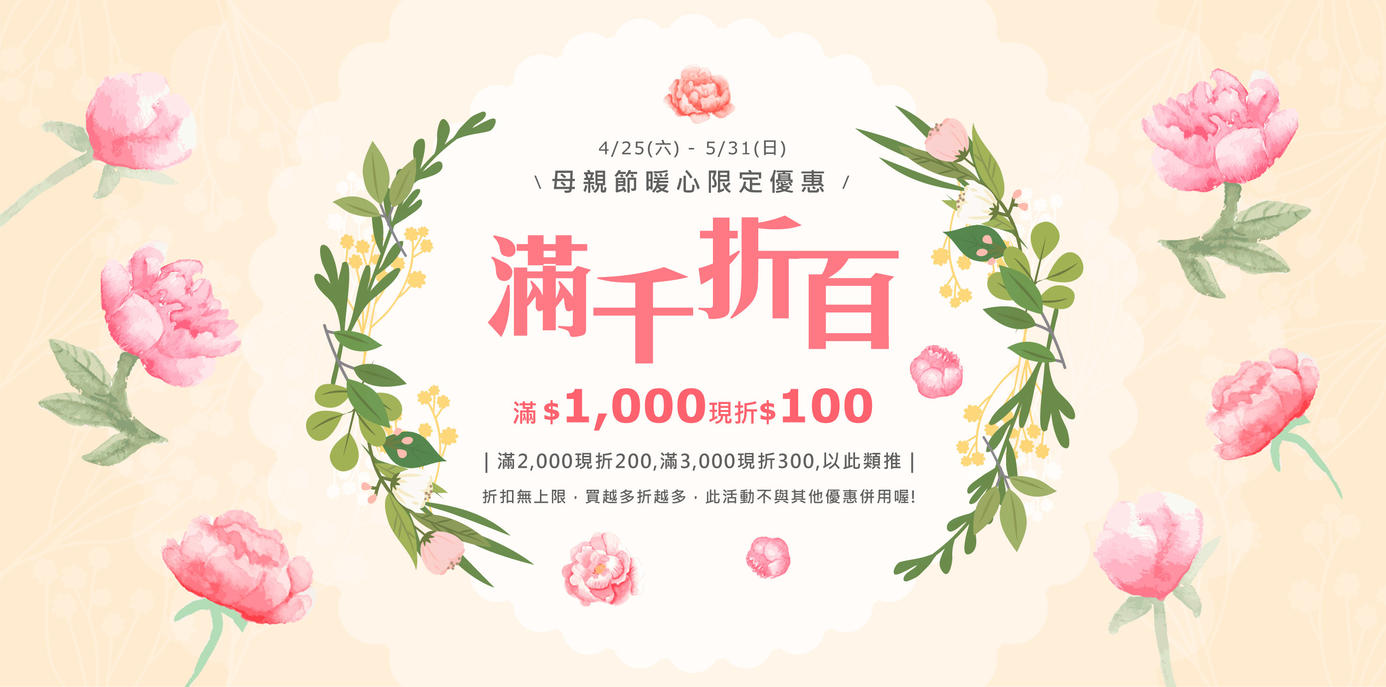 ✨ 滿 1,000 現折 100 元,買越多折越多唷 !