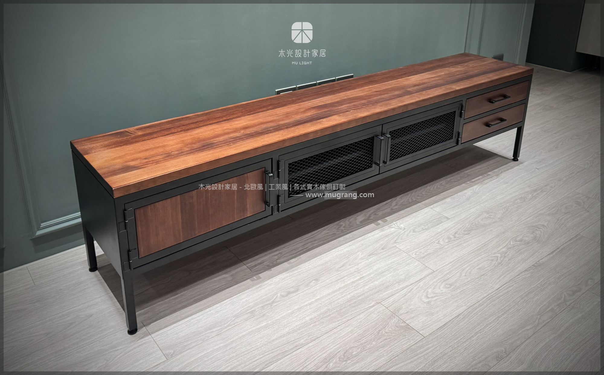 工業風實木鐵網置物電視櫃|可訂製