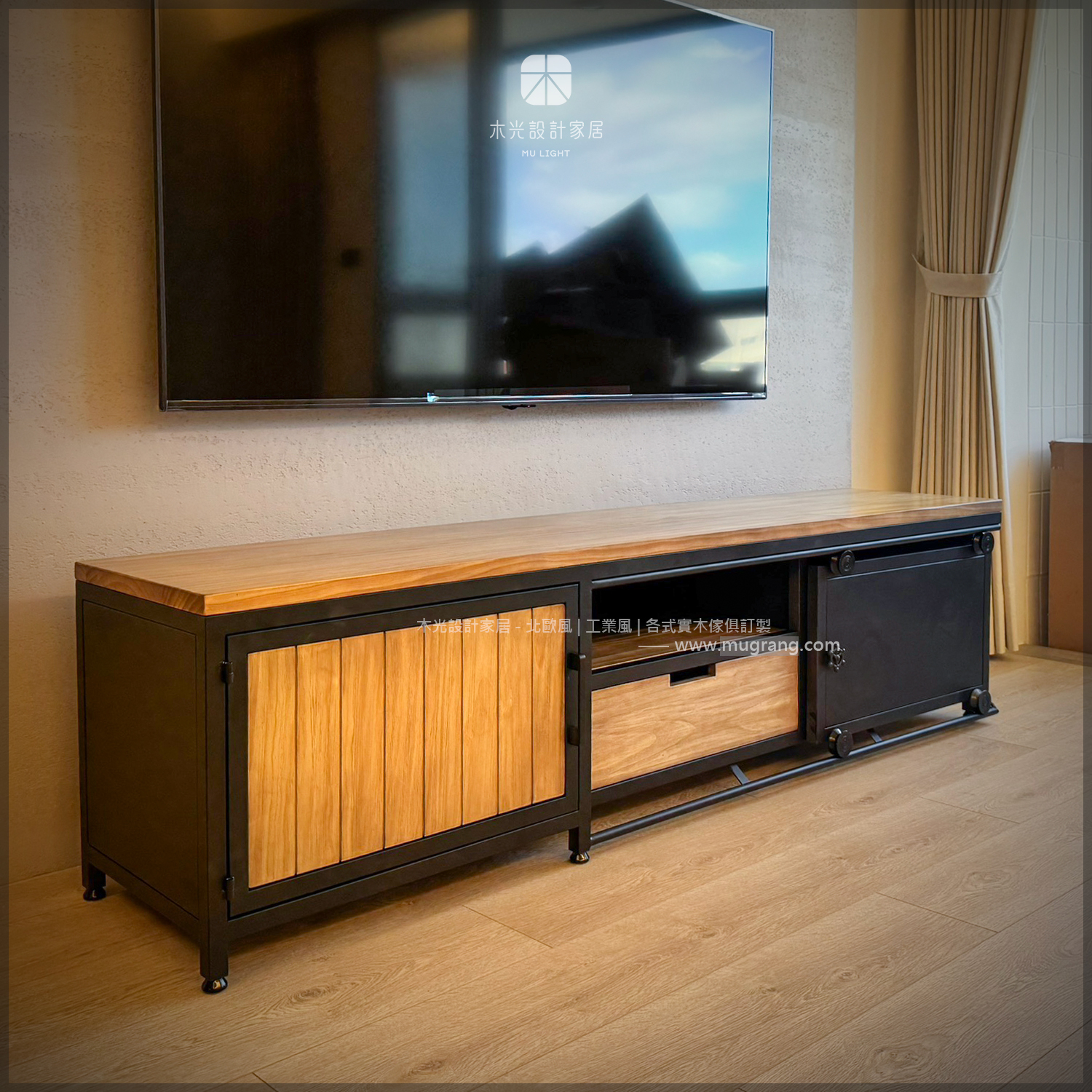 木光設計家居-台灣製工業風實木電視櫃-可訂製